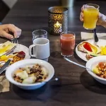 ארוחת בוקר בופה בחינם מוגשת בבוקר, בבר. מסעדה עם תפריט רחב Fjordstuer מכינה ארוחות אירופאיות.
